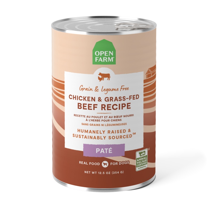 Open Farm Chicken & Grass-Fed Beef Pate for DogsThis complete and balanced pt recipe features G.A.P. certified, humanely raised chicken and grass-fed beef. In addition, chicken liver and non-GMO vegetables such as sweet potatoes, carrots and spinach are ad