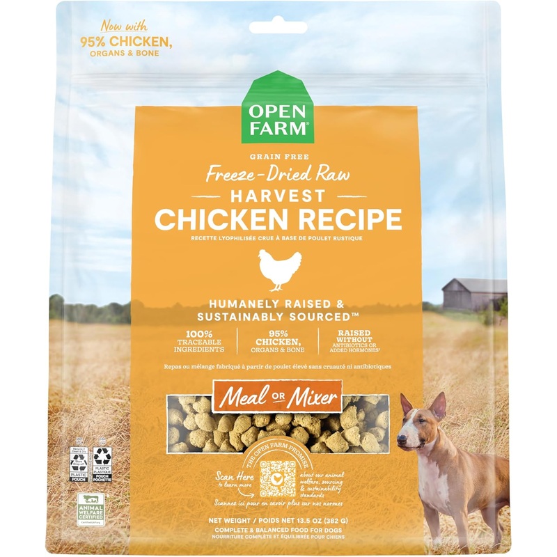 Chicken with ground bone, chicken livers, chicken necks, chicken hearts, carrots, blueberries, squash, montmorillonite clay, sunflower seeds, cranberries, salmon oil, spinach, kale, pumpkin seeds, chicory root, dried kelp,coconut oil (preserved with mixed tocopherols), apple cider vinegar, cinnamon, turmeric,mixed tocopherols (a natural preservative), spirulina, vitamin d3 supplement, vitamin e supplement, thiamine mononitrate, folic acid, choline, zinc amino acid chelate , copper amino acid chelate , selenium yeast