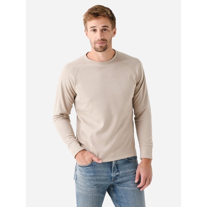 DESCRIPTION:A classic crewneck sweatshirt made from a soft cotton blend with a subtle jacquard texture.FEATURES:Crew NecklineRaglan SleevesBanded Cuffs and HemJacquard Fabrication68% Cotton, 31% Polyester, 1% SpandexClassic FitModel is wearing size Medium