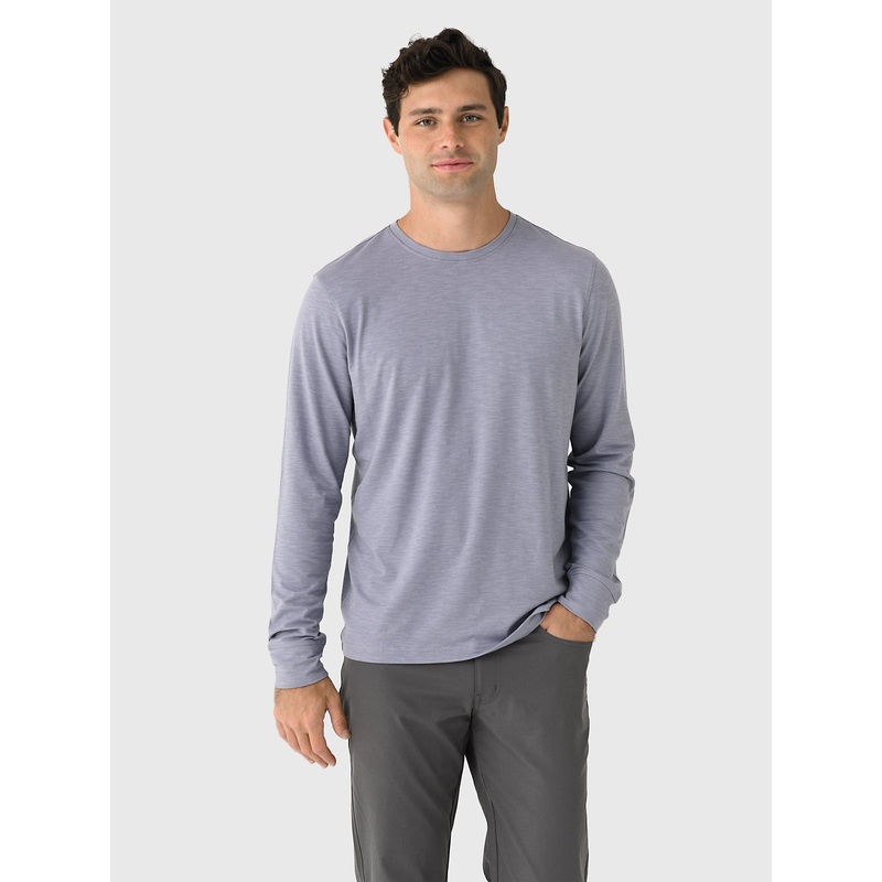 This long-sleeve crewneck tee is made from a soft fabric blend and features a subtle micro-stripe print for effortless, everyday wear.