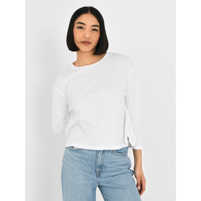DESCRIPTION:A slightly cropped, long-sleeve tee made from soft cotton.FEATURES:Crew NecklineLong SleevesSplit HemSlight Cropped Silhouette100% CottonClassic FitModel is wearing size Small tee.Model's Measurements: Height: 5'8" | Bust: 32A | Waist: 25.5" |