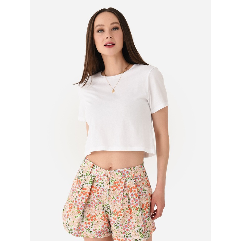 DESCRIPTION:Slightly cropped t-shirt made from soft organic cotton.FEATURES:T-ShirtCrew NecklineShort SleeveSoft FabricationStraight HemSlight Cropped Silhouette100% Organic CottonClassic FitModel is wearing size Small t-shirt.White: Model's Measurements: