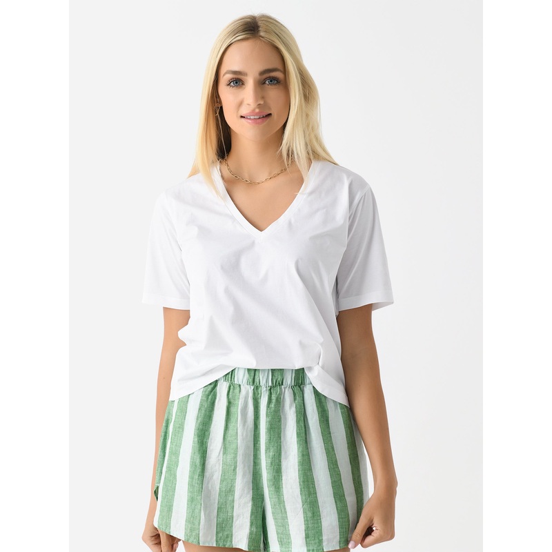 DESCRIPTION:A slightly oversized v-neck tee made from a soft cotton blend.FEATURES:V-NecklineStraight Hem91% Cotton, 9% ElastaneRelaxed FitModel is wearing size Small tee.Model's Measurements: Height: 5'8" | Bust: 34C | Waist: 26" | Hips: 36.5" | Dress Siz