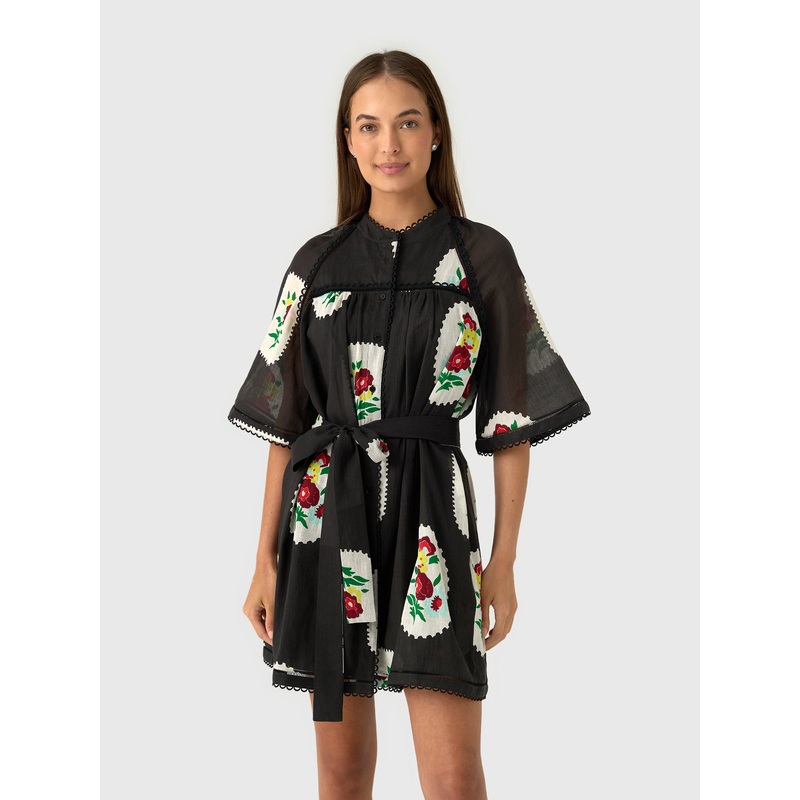 DESCRIPTION:Crafted from lightweight cotton, the Folk Doilie Print Smock Dress features loop trim accents and fine gathers at the neckline and sleeves. Its relaxed silhouette, side seam pockets, and body lining offer volume and charm for effortless day-to-
