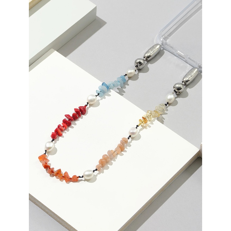 DESCRIPTION:A durable nylon phone wristlet featuring freshwater pearls, red coral, citrine, aquamarine, sunstone, and red agate gemstones.FEATURES:Ball Stud ConnectionNylon CordFreshwater Pearls, GemstonesLength: 12.25 in.Weight: 42g