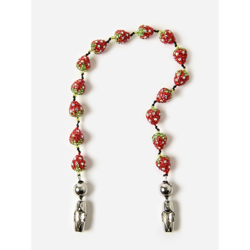 DESCRIPTION:A durable phone wristlet featuring cute strawberry beads embellished with pav rhinestones.FEATURES:Ball Stud ConnectionNylon CordResin Beads, Pav RhinestonesLength: 12.25 in.Weight: 44g
