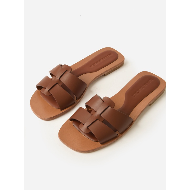 A flat sandal crafted from premium leather with a padded insole and slip-resistant sole.