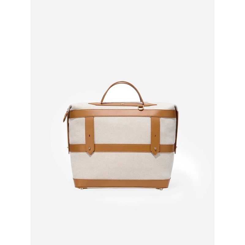 Durable canvas weekend bag with enough space for clothes, a wash kit, and a laptop.