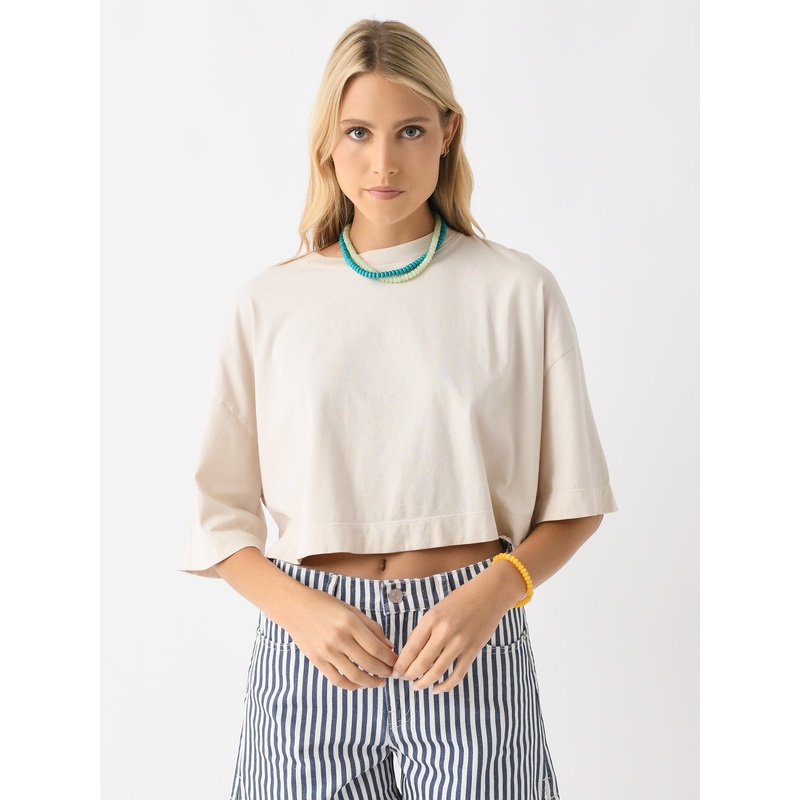 An extra boxy cropped tee made from ringspun cotton with wide sleeves that hit at the elbow.