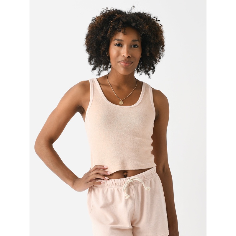 DESCRIPTION:A classic, slim-fitting tank top made from soft terry loop fabric.FEATURES:Scoop NecklineWide StrapsSlight Cropped SilhouetteTerry Fabrication100% CottonSlim FitModel is wearing size Small tank top.Peaches/Cream, Navy: Model's Measurements: Hei