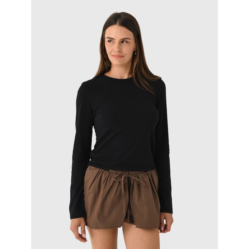 A classic long-sleeve crewneck tee made from soft, lightly knit fabric.