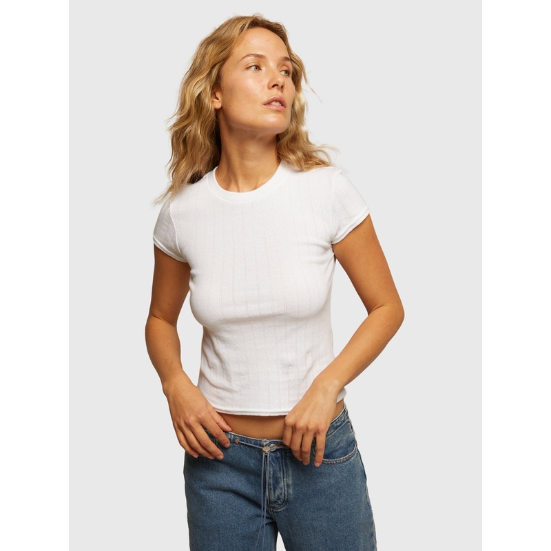 DESCRIPTION:A form-fitting tee made from soft, pointelle knit cotton.