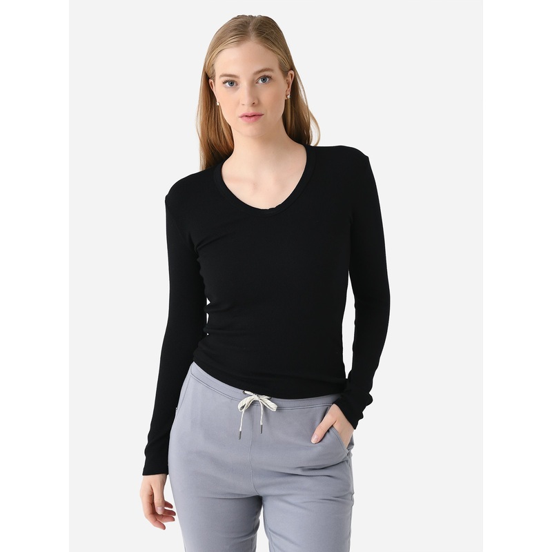 A soft, ribbed long-sleeve tee with a u-neckline.