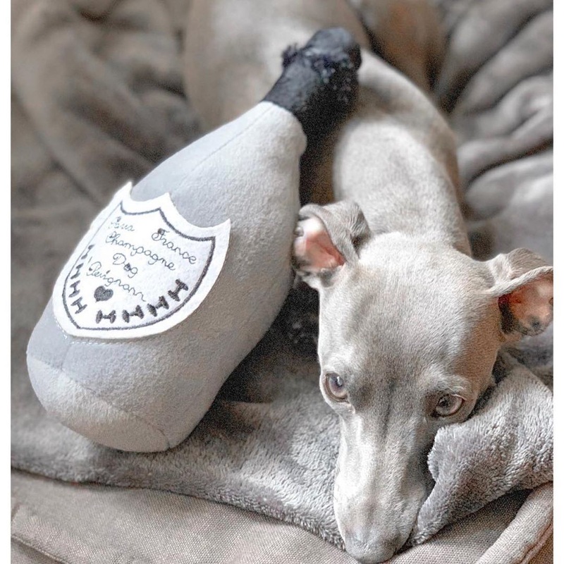 Dog Perignonn Champagne ToyDog Perignonn Champagne Bottle Toy - back in stock at Haute Diggity Dog! Dog Perignonn plush toy from the Muttini Bar collection of designer parody plush dog toys - where it is ALWAYS happy hour! Now your dog can have his own bot