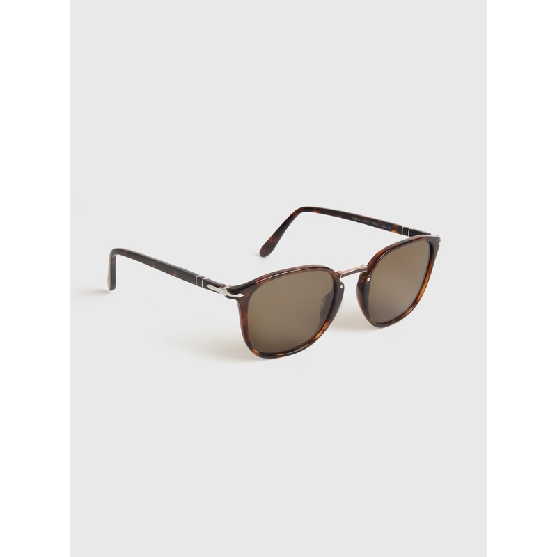 Introducing a fresh Persol sun style with a modern frame design. This unique piece combines frontal acetate and a metal bridge, enhanced with polished details.