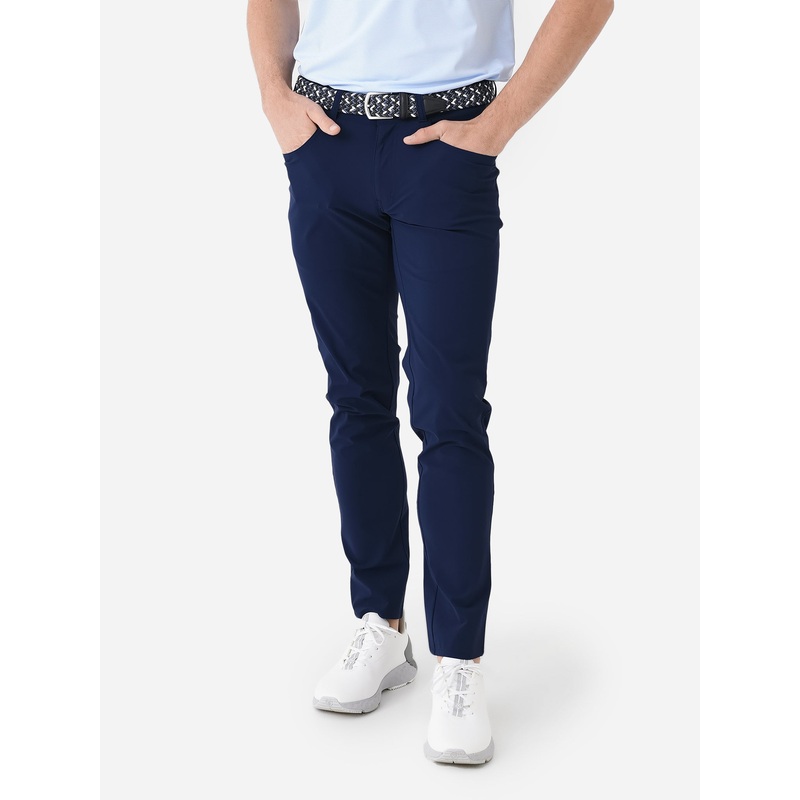 Lightweight pant with five-pocket styling designed for golf course and office wear.