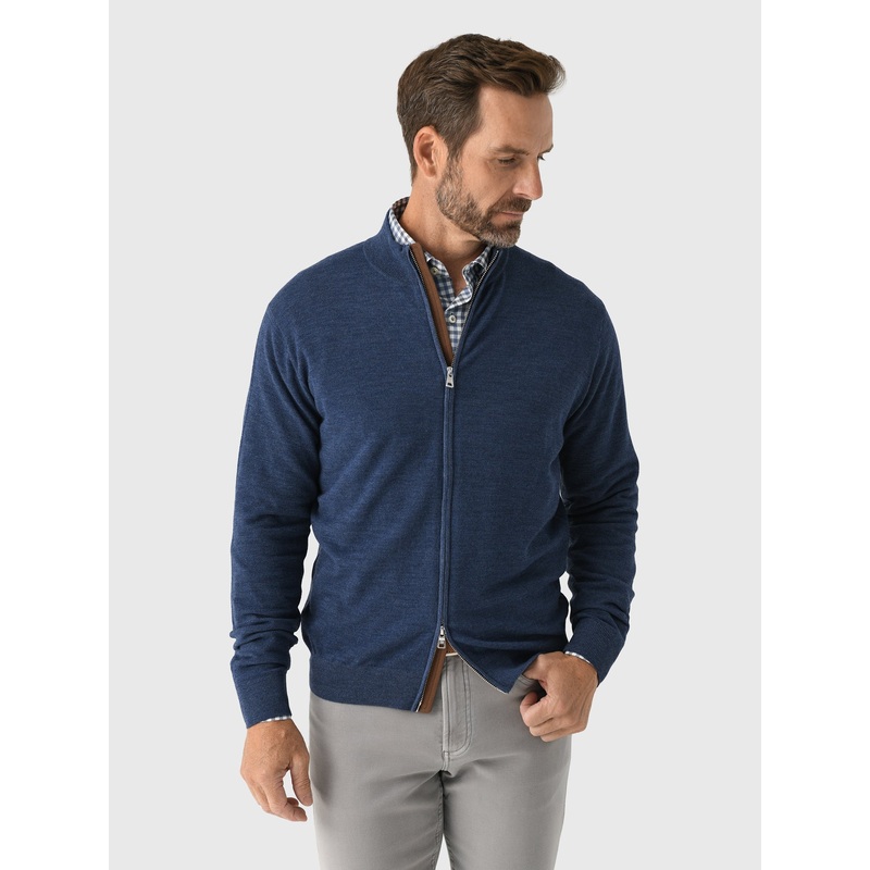 This elevated full-zip sweater is made from incredibly soft 16.5 micron Merino wool, a fiber that rivals the luxurious feel of cashmere. The Merino is blended with a core performance yarn and knit in a textured piqu design, providing stretch and shape retention.