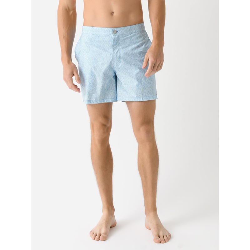DESCRIPTION:A breathable swim trunk with a vintage-inspired design and custom wave print.FEATURES:Half-Elastic WaistbandButton, Zip-Fly ClosureSide PocketsBack PocketMesh LinerInseam: 6 in.All-Over Novelty Print100% PolyesterTailored FitModel is wearing si