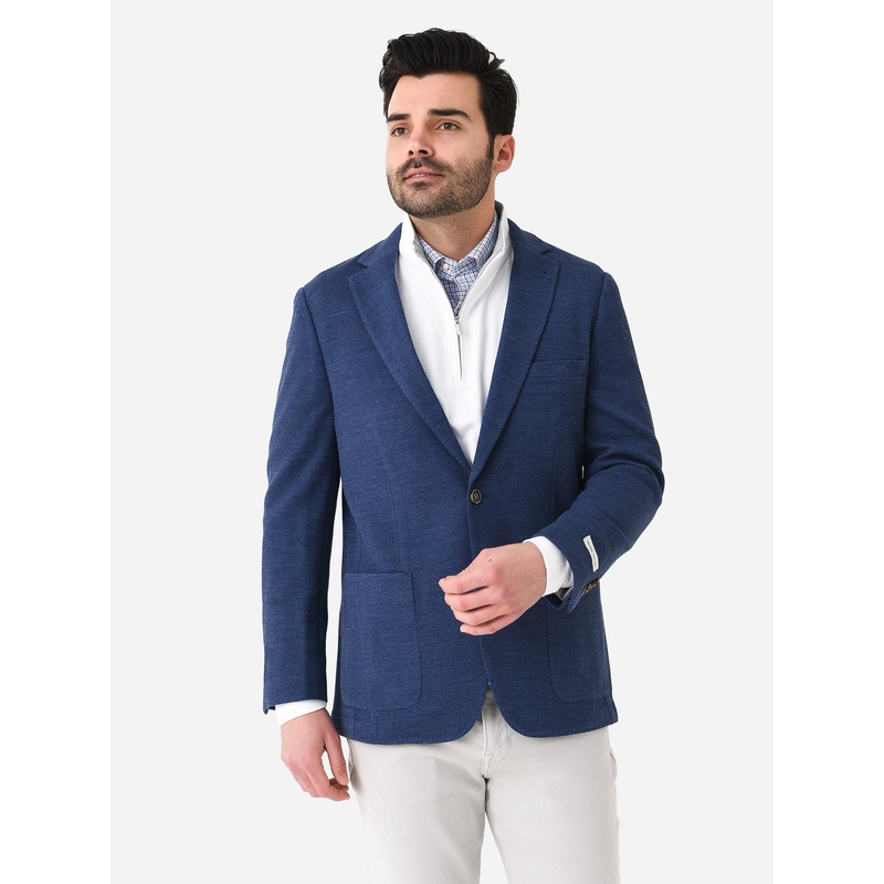 DESCRIPTION:Half-lined soft jacket made from a cotton-wool blend.FEATURES:Sports Coat JacketNotched LapelLong SleeveLeft Chest PocketDouble-Button ClosurePatch PocketsHalf LinedJersey Knit Fabrication65% Cotton, 25% Wool, 8% Polyester, 2% NylonClassic FitM
