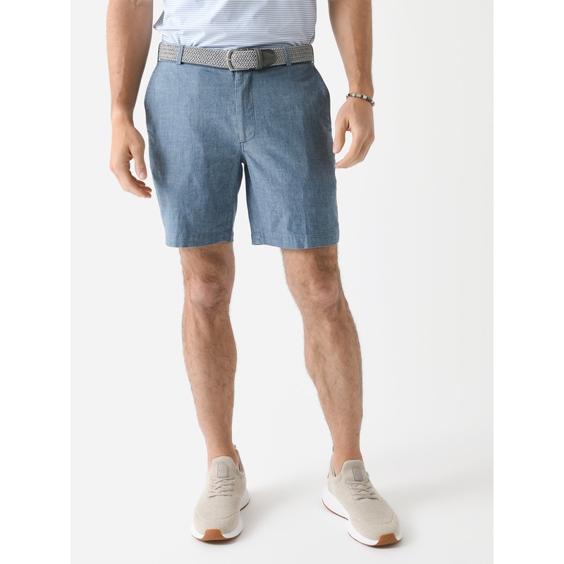 A casual warm-weather essential short made from lightweight chambray with a hint of stretch.