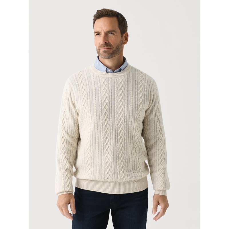 DESCRIPTION:A chunky cable crewneck sweater made from a wool, yak, and cashmere blend in a robust 7 gauge knit for warmth and softness.FEATURES:Crew NecklineRibbed Neckline, Cuffs and HemCable Knit Fabrication65% Wool, 25% Yak, 10% CashmereClassic FitModel