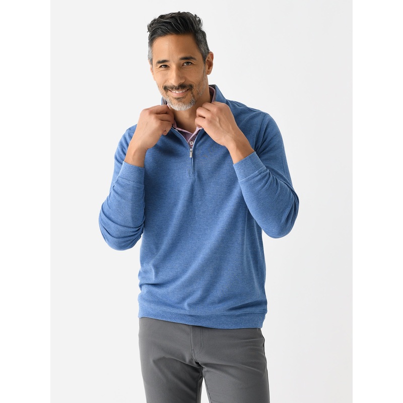 This versatile layer is crafted from soft piqu knit and offers a sweatshirt-like comfort in a classic quarter-zip style.