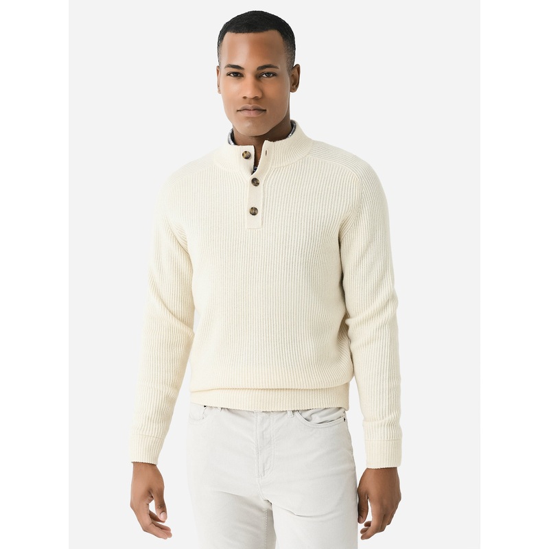 Incredibly soft wool blend pullover sweater featuring a three-button mock collar.