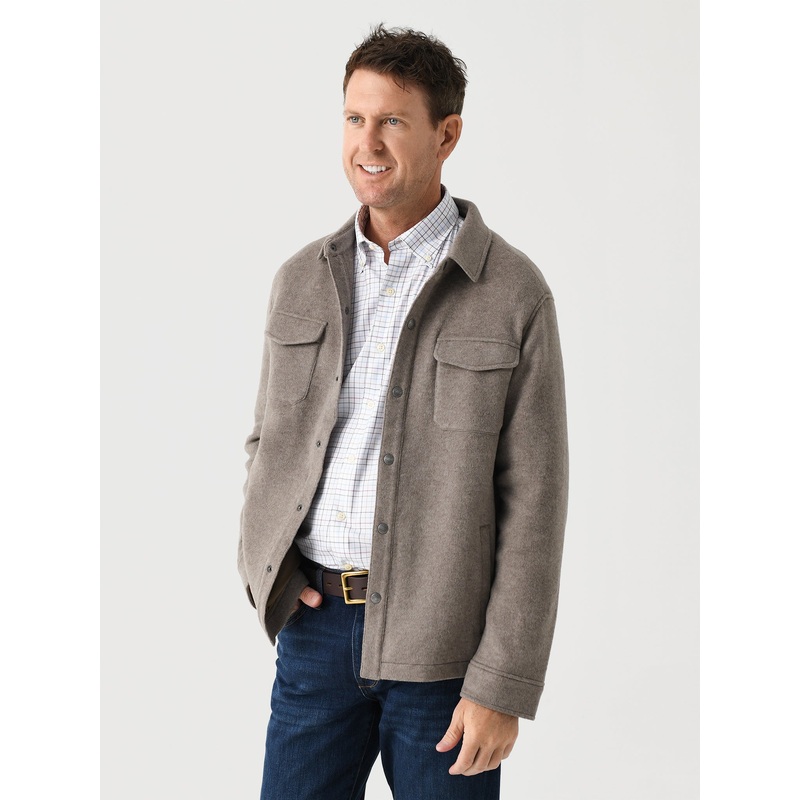 DESCRIPTION:An unlined shirt jacket made from wool fleece and finished with chest and side pockets.FEATURES:Spread CollarChest PocketsButton CuffsSide PocketsButton-Down Front2-Way Stretch100% WoolClassic FitModel is wearing size Medium jacket.Model's Meas