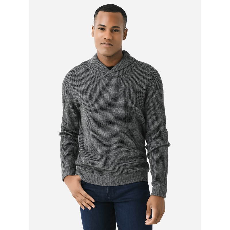 DESCRIPTION:Incredibly soft sweater made from Merino wool, yak, and cashmere featuring a shawl collar.FEATURES:Shawl CollarRibbed Neckline, Cuffs and HemKnit Fabrication65% Merino Wool, 25% Yak, 10% CashmereClassic FitModel is wearing size Medium shawl.Mod