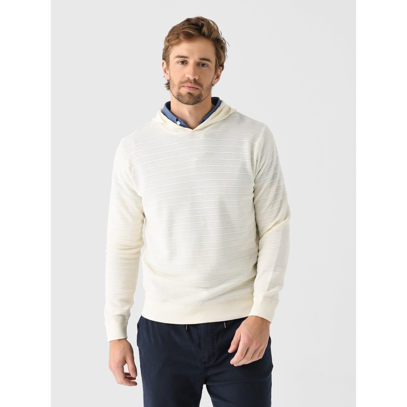 DESCRIPTION:This popover hoodie is crafted from Supima cotton with a unique honeycomb stitch, it offers unparalleled softness, breathability, and a touch of texture.FEATURES:Attached HoodRibbed Cuffs and HemStitched StripesKnit Fabrication70% Supima Cotton