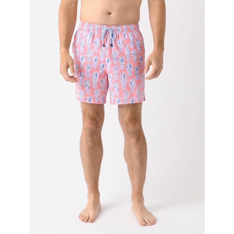DESCRIPTION:A classic swim trunk made from comfortable four-way stretch material with a soft mesh liner and custom pineapple print.FEATURES:Elastic WaistbandAdjustable DrawstringSide PocketsBack PocketMesh LinerInseam: 7 in.All-Over Novelty Print4-Way Stre