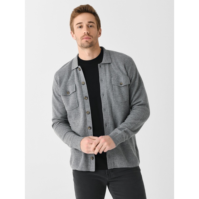 DESCRIPTION:Knit sweater shirt made from supremely soft cotton and merino wool.FEATURES:Spread CollarButton Chest PocketsBanded CuffsButton ClosureKnit Fabrication70% Supima Cotton, 30% Merino WoolClassic FitModel is wearing size Medium sweater.Model's Mea