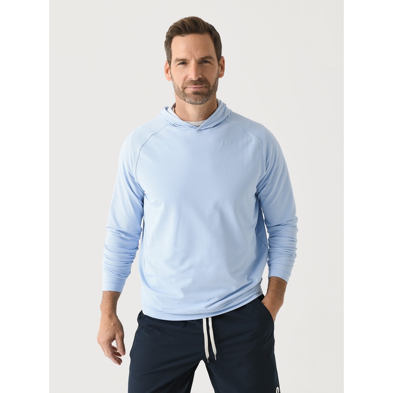A comfortable pullover hoodie made from four-way stretch performance fabric and finished with a subtle stripe print.