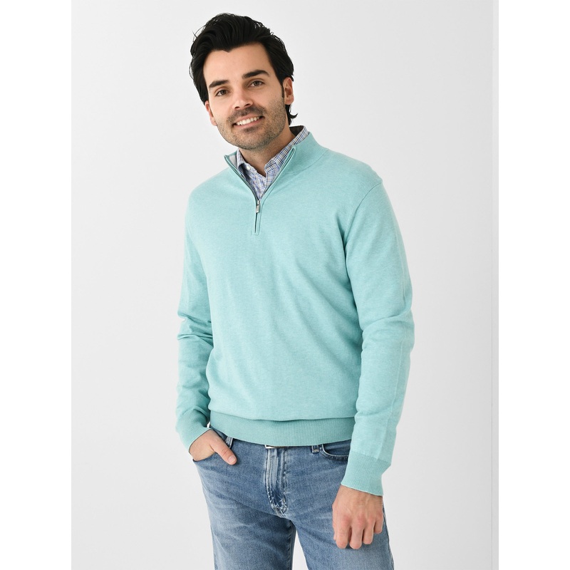 DESCRIPTION:A sophisticated knit pullover made from a soft cotton blend.FEATURES:Stand-Up CollarQuarter-Zip ClosureRibbed Cuffs and HemKnit Fabrication65% Cotton, 30% Tencel, 5% SilkClassic FitModel is wearing size Medium pullover.Model's Measurements: Hei