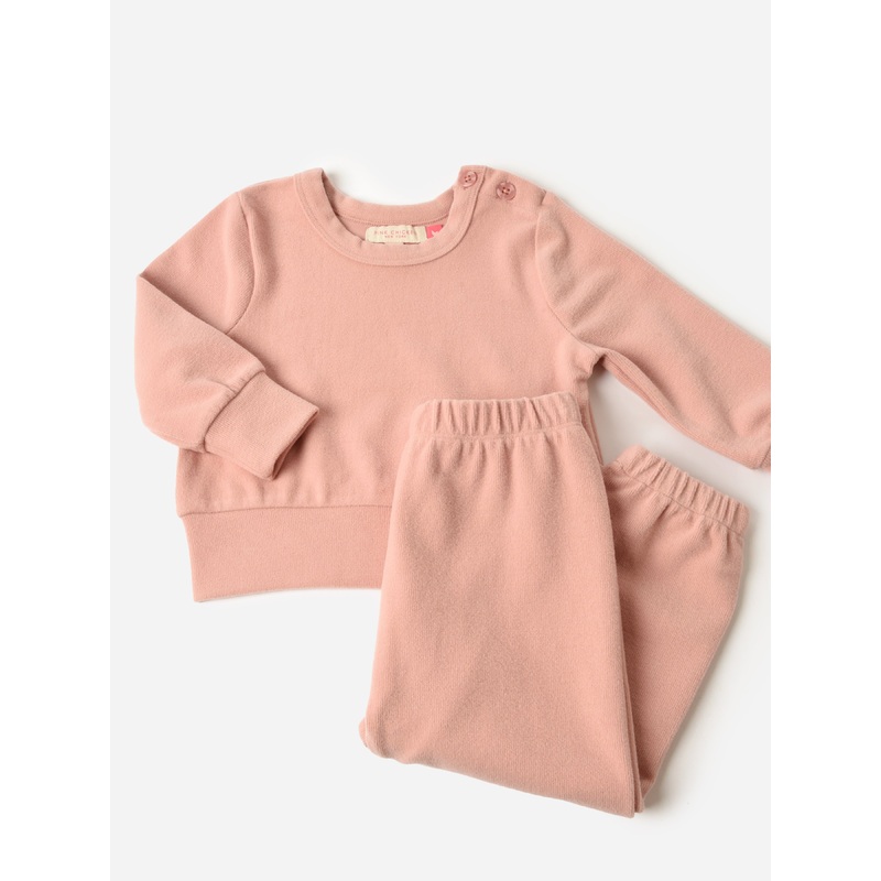 DESCRIPTION:A crewneck sweater and pant set made from soft, fine wale corduroy cotton.