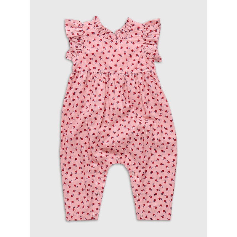 DESCRIPTION:This charming cotton jumper features a sweet ditsy print with silver thread woven throughout for a hint of shimmer. Finished with a ruffle neckline, ruffle sleeves, and a ring snap closure for easy diaper changes, it's as practical as it is ado