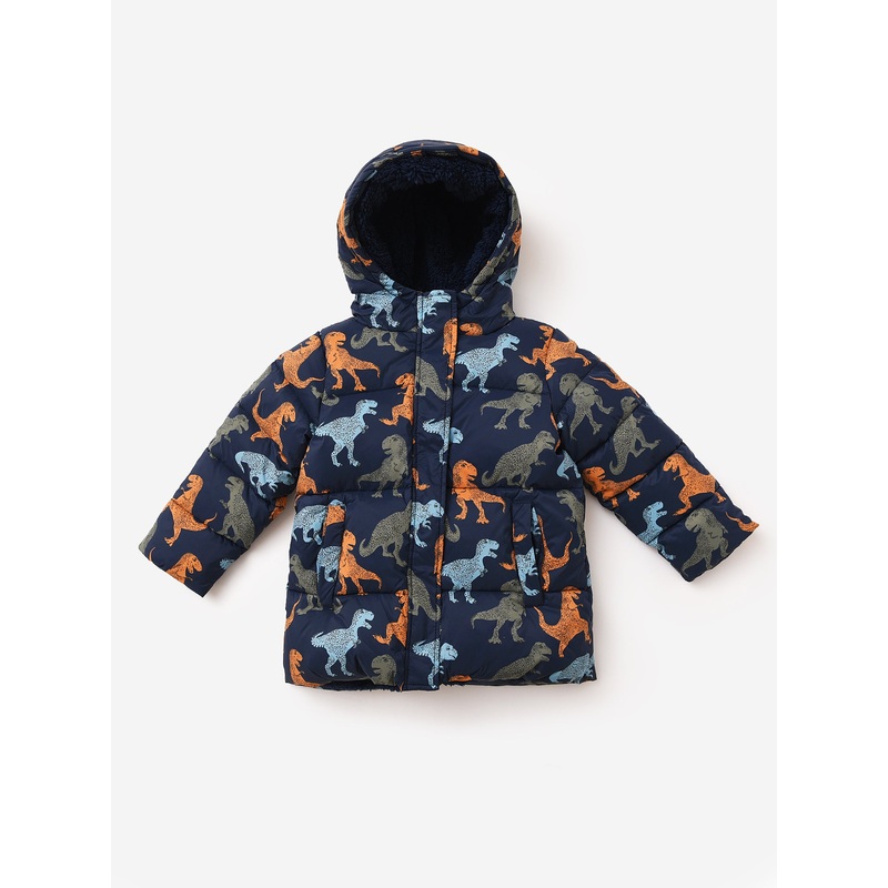 DESCRIPTION:Down-insulated puffer jacket with a soft sherpa lining.FEATURES:JacketHigh Neckline with HoodLong SleeveZip + Snap ClosureSide PocketsStraight HemAll-Over Novelty PrintSherpa LinedQuilted FabricationClassic FitShell: 100% Nylon | Hood Fill/Lini