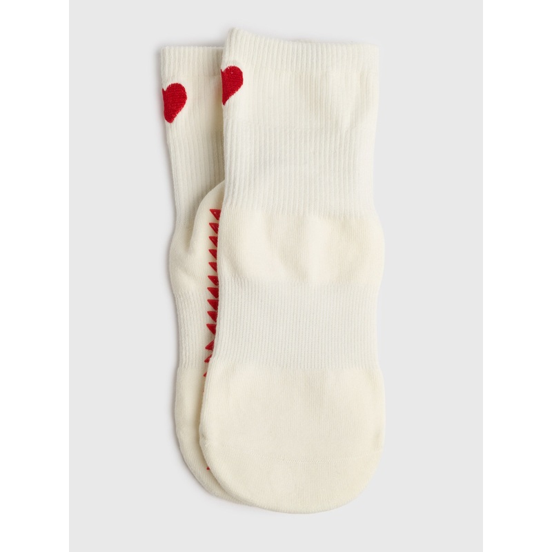 A pair of breathable ankle socks featuring an embroidered heart design and a no-slip grip bottom.
