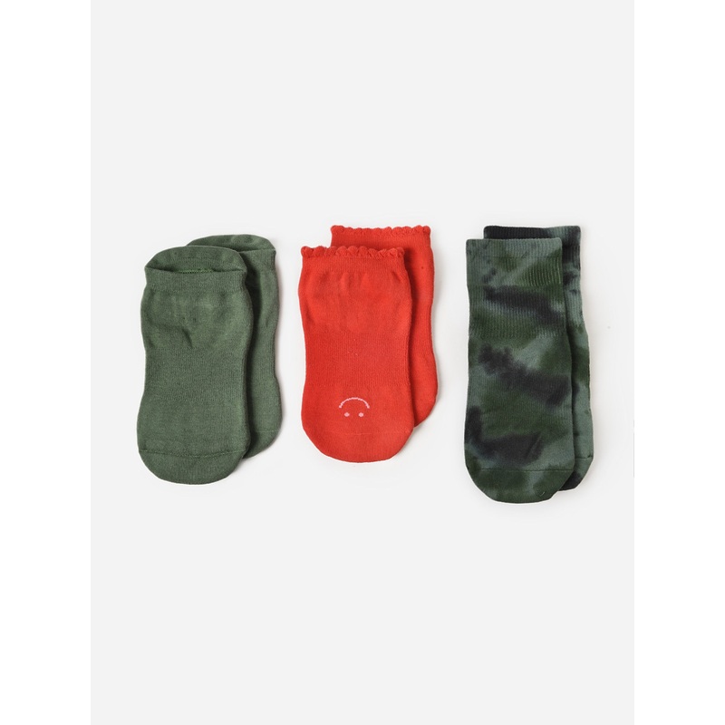 DESCRIPTION:This three-pack of mid-weight grip socks includes two full-foot styles that have a padded ankle rest and one above-ankle style.FEATURES:3-Pack of SocksCompression Arch SupportMid-Weight Terry FootbedPVC Grip BottomHappy Full Foot in RedJamie An