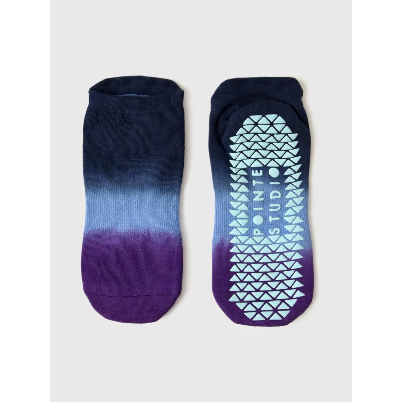 DESCRIPTION:Mid-weight cushioned grip socks for barre and pilates.FEATURES:SocksAnkle LengthPadded Ankle RestCompression Arch SupportMid-Weight Terry FootbedPVC Grip BottomMulti-Colored Ombre Print55% Cotton, 40% Nylon, 5% SpandexS/M Fits Women's Size 5 -
