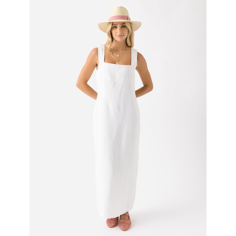 DESCRIPTION:An effortlessly elegant midi dress made from lightweight linen with a flattering square neckline and back split hem.FEATURES:Square NecklineWide StrapsBack Zip ClosureBack Split HemMidi Silhouette100% LinenClassic FitModel is wearing size Small