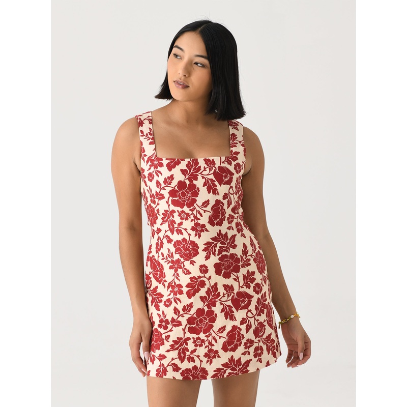 DESCRIPTION:This charming dress features a vintage-inspired print on lightweight linen, a flattering square neckline, and an A-line silhouette. Effortlessly transition from day to night in this versatile wardrobe staple.FEATURES:Square NecklineFixed Straps