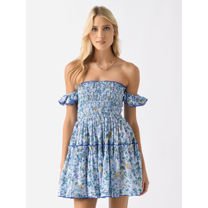 DESCRIPTION:A smocked mini dress made from lightweight cotton with a flowy, romantic silhouette and pretty floral print.FEATURES:Square NecklineRuffle SleevesSmocked BodiceTiered SkirtMini SilhouetteAll-Over Novelty Print100% CottonClassic FitModel is wear
