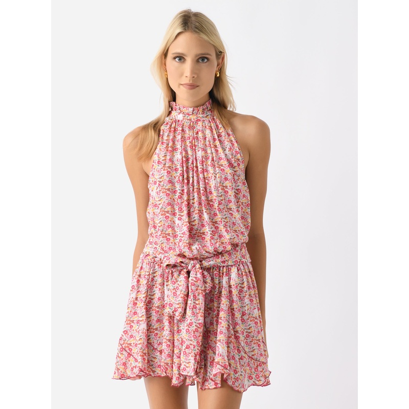 DESCRIPTION:A halter-style mini dress with a gathered construction made from soft viscose fabric with a dainty floral print.FEATURES:High NecklineBack Keyhole Button ClosureSleevelessSelf-Tie BeltMini SilhouetteAll-Over Novelty Print100% ViscoseClassic Fit