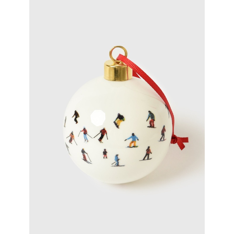 DESCRIPTION:This playful Christmas bauble celebrates the thrill of winter sports! The crisp white ornament is decorated with an array of skiers and snowboarders in colorful outfits, capturing the energy and excitement of hitting the slopes.FEATURES:Ornamen