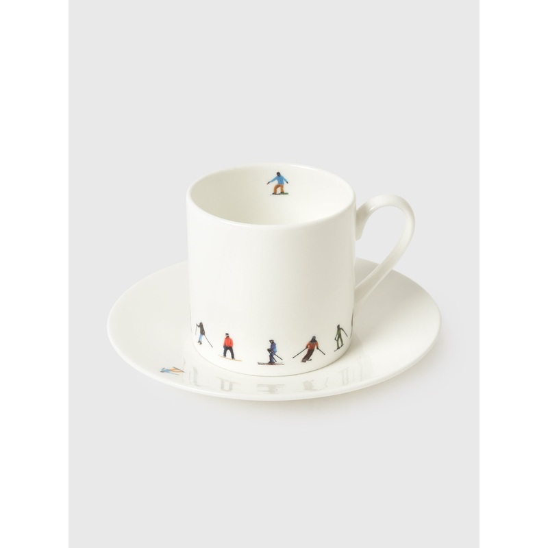 Indulge in your espresso with this exquisite cup and saucer set. The crisp white porcelain is beautifully accented by a signature skier design, making it a stylish addition to your coffee collection.