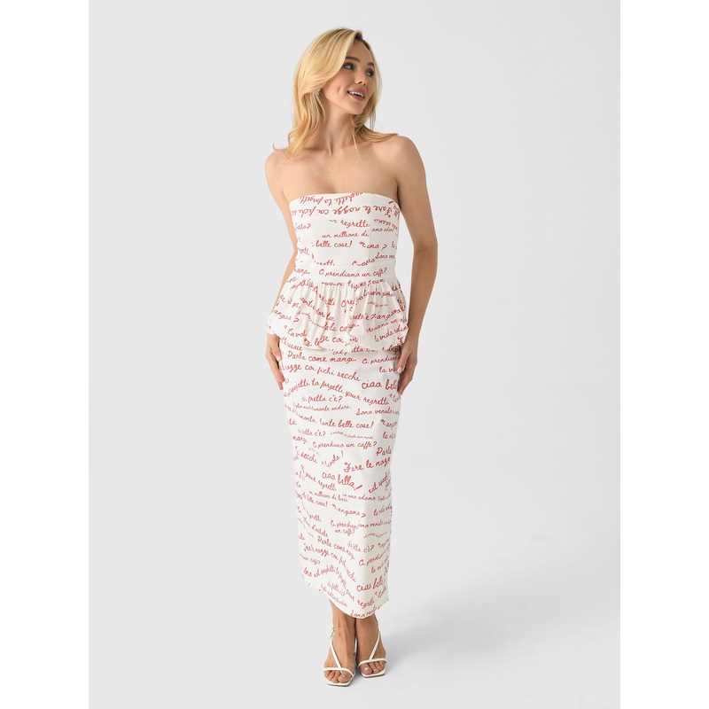 DESCRIPTION:The Love Dress embodies pure femininity and refined elegance. Crafted with a hint of spandex, it drapes beautifully and moves with you, offering a flattering silhouette. FEATURES:Strapless NecklineBack Zip ClosurePeplum HemColumn SkirtBack Spli