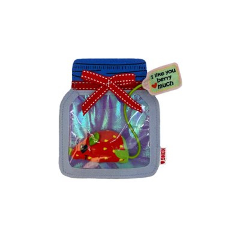 KONG Pull-a-Partz Jamz fruity mouse tempts curious kitties to pry him out for batting and pouncing funwith springy elastic tail to add excitement to pantry playtime. Two toys in one provide dismantling action that satisfies hunting instincts. Crackly film