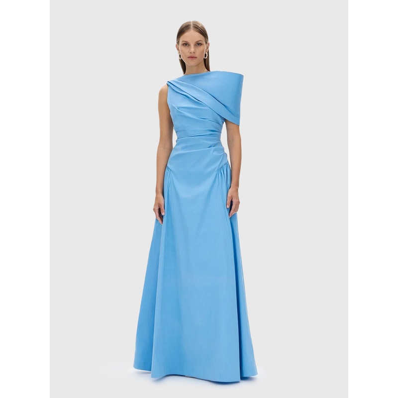 DESCRIPTION:The elegant Banksia Gown offers a stunning and flattering shape. Its cinched waist, with an internal corset and waist tape, provides perfect definition. An over-the-shoulder detail beautifully flatters the dcolletage. Enhanced by symmetrical hi