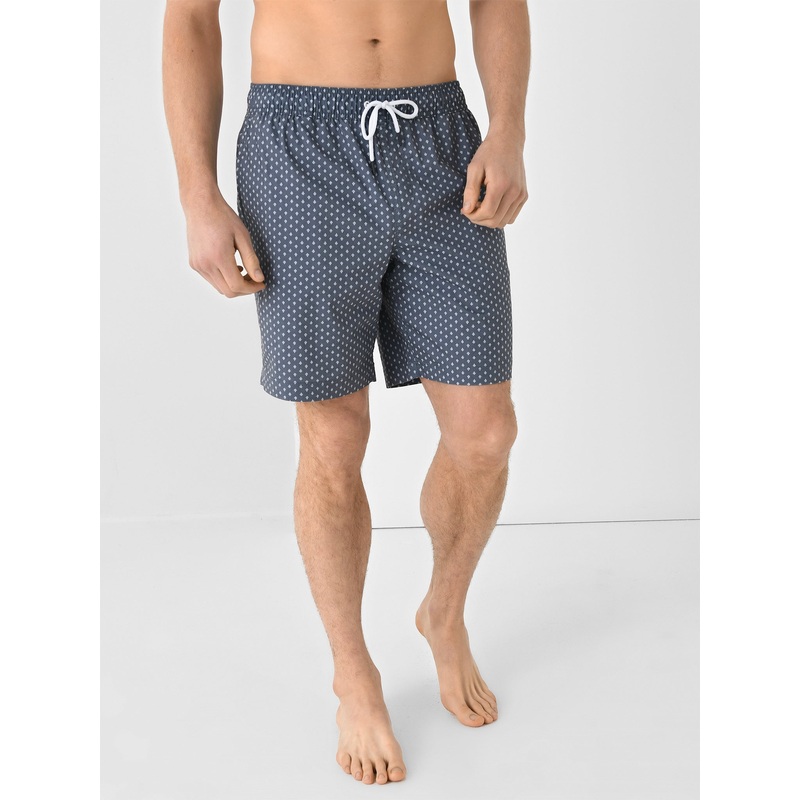 DESCRIPTION:A breathable swim trunk made from a stretchy cotton blend with mesh ventilated pockets and a custom print.FEATURES:Elastic WaistbandAdjustable DrawstringSide PocketsBack PocketInseam: 8.25 in.All-Over Novelty Print51% Cotton, 44% Polyester, 5%